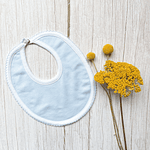 Babero de algodón pima peruano rayado y bordado picueta en el contorno. Forrado con toalla, súper suave y absorbente.